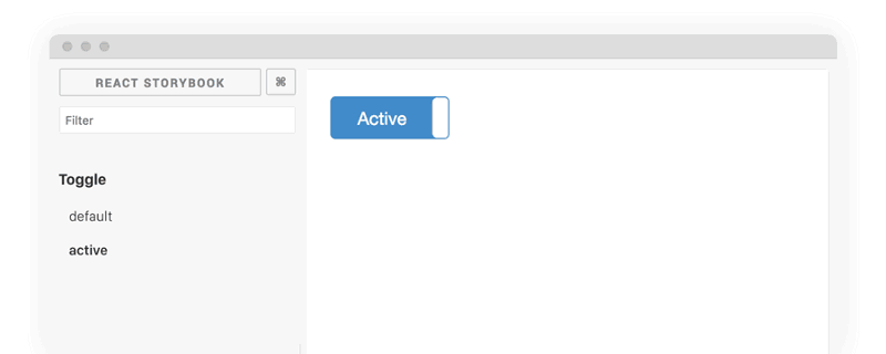 .add(βactiveβ, () => <Toggle active={true} />)Then checkout the component in action via the component explorer. Repeat this process to index other components and grow your library.