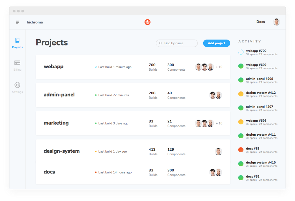 Collaboration is a core part of the Chromatic workflow. Sync account permissions and access with GitHub, Bitbucket, or GitLab in 1-click. This allows you quickly loop in key stakeholders to get a second pair of eyes.