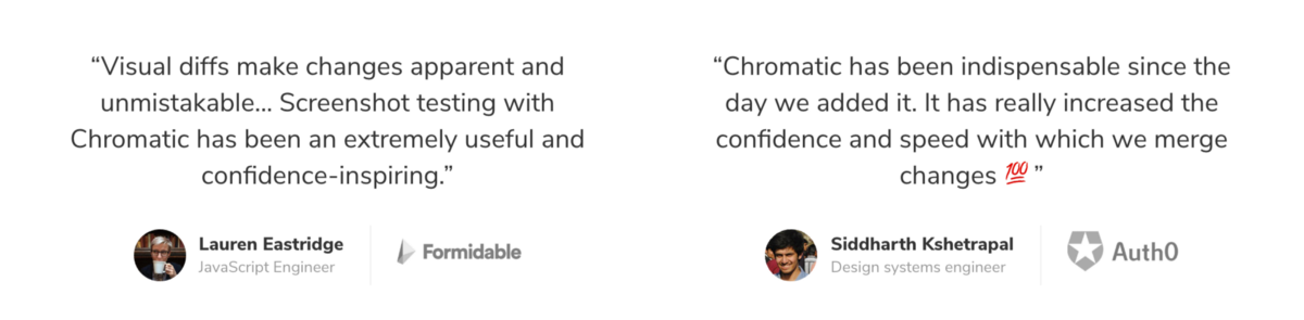 TLDR: Weβre launching Chromatic 1.0 today! Chromatic monitors the look of React UI components from commit-to-commit and notifies you of visual changes automatically. You save time by automating visual QA. You save money by avoiding expensive bug fixes. Made for Storybook by Storybook maintainers.