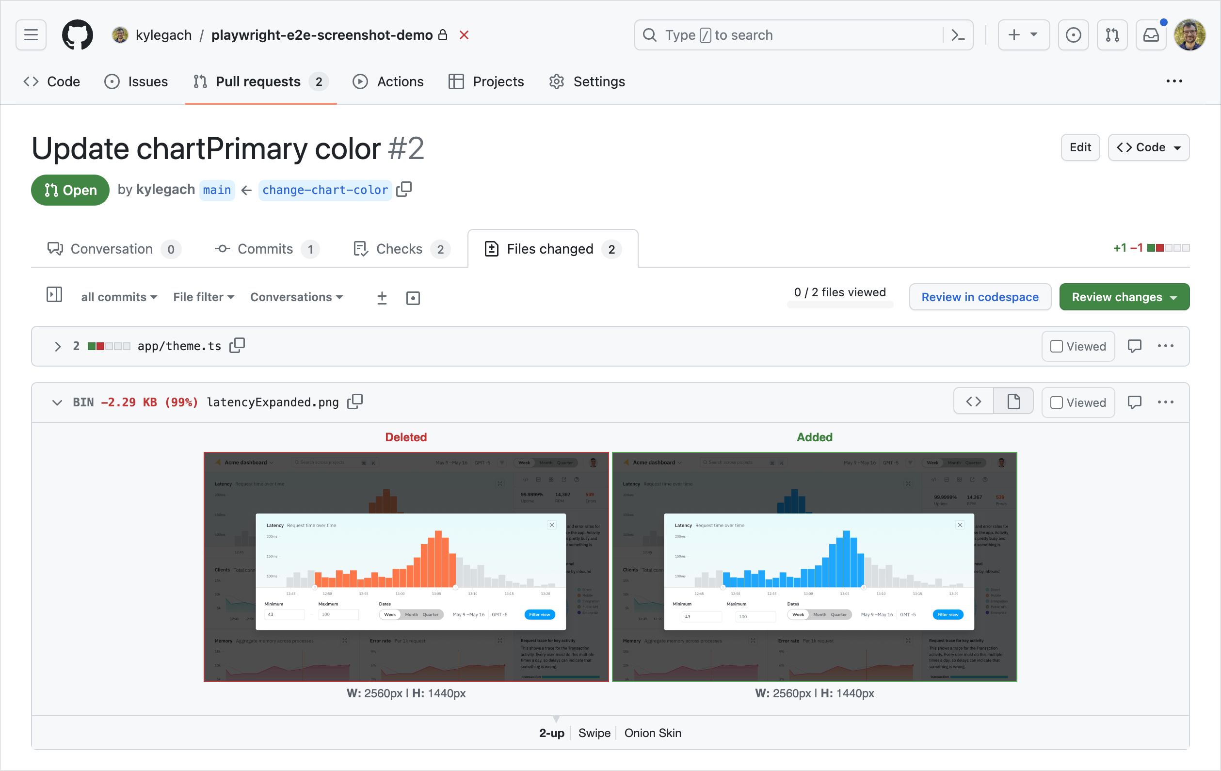 Now, when we review that PR, we can compare the previous baseline screenshot and the modified one: