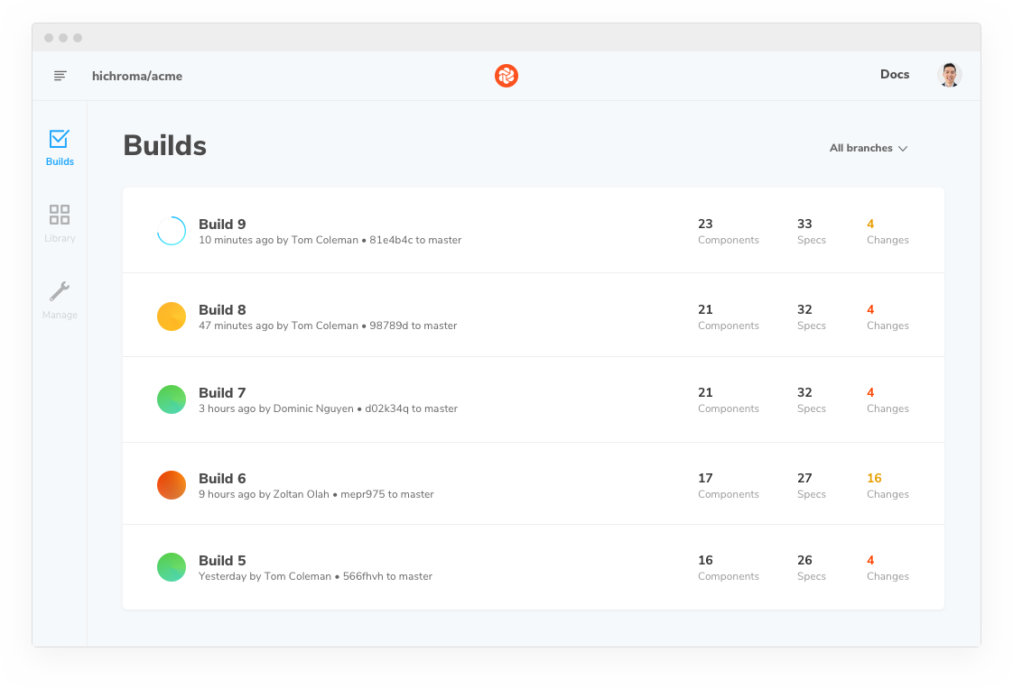 The new sidebar makes it easier to switch between the most common screens in your project. Find links to builds, component library, and management options.