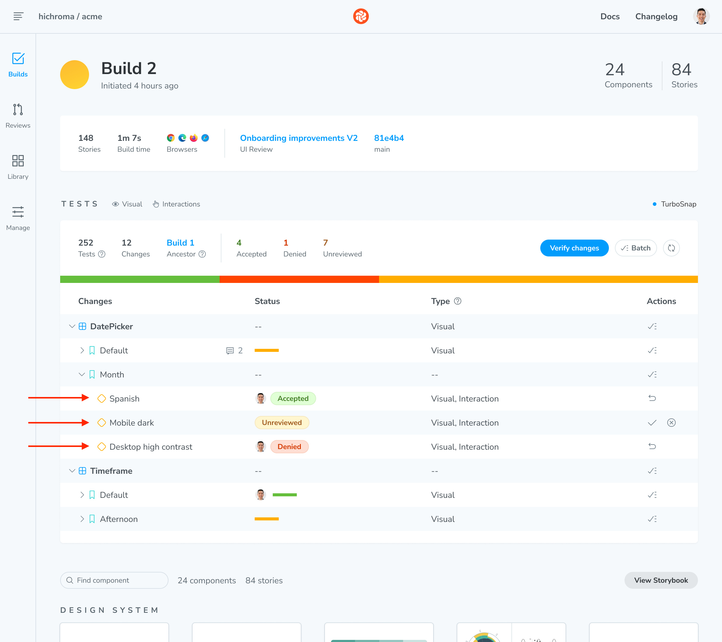 scheduleevent in the Chromatic Github Action. - Show components from the last build for a project’s default branch on the Library page instead of the previous build for the entire app.