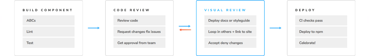 When integrated with code hosting and continuous integration tools it becomes a seamless part of the design system workflow: